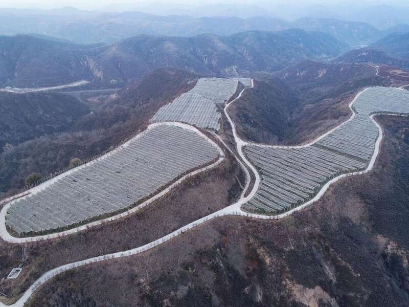 这是2022年10月26日拍摄的延安市安塞区南沟村苹果园(无人机照片)。新华社记者 张博文 摄