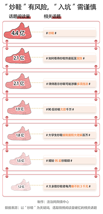 微博话题“揭秘95后炒鞋群”的相关阅读量达到了1.9亿,其中,有些95后炒鞋者靠“炒鞋”一夜暴富,也有不少炒鞋者亏得血本无归,甚至有炒鞋者卷入经济纠纷或涉嫌违法。