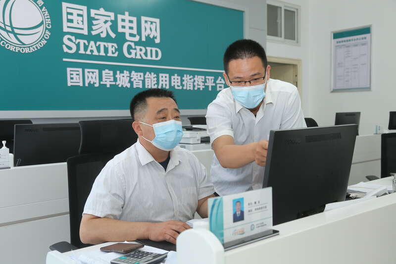 图为国网阜城县公司“线损治理”柔性团队员工在讨论线损异常台区。门洪昌摄
