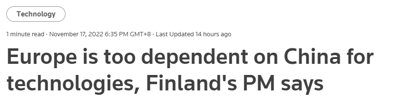 芬兰总理杞人忧天:欧洲在技术上太过依赖中国