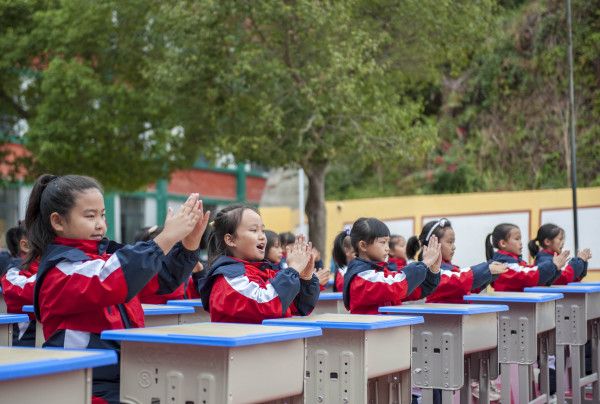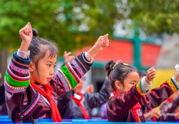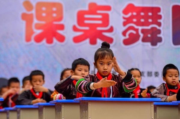 贵州从江:学生表演“课桌舞” 唱歌鼓掌尽显活泼