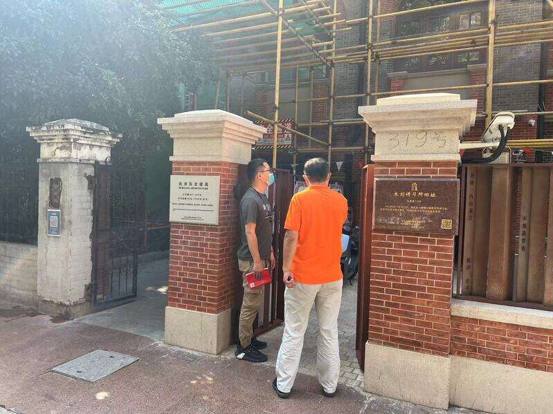 △四川北路街道信访办工作人员到“木刻讲习所旧址”陈列馆查看情况。