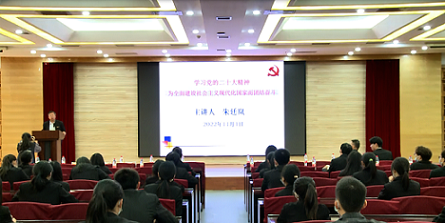 吉首大学张家界学院马克思主义学院院长朱廷岚带领大家重温了党的二十大盛会概况,解读了二十大报告主要内容以及学习贯彻党的二十大精神的要求,引导参会学生为全面建设社会主义现代化国家、全面推进中华民族伟大复兴而团结奋斗。
