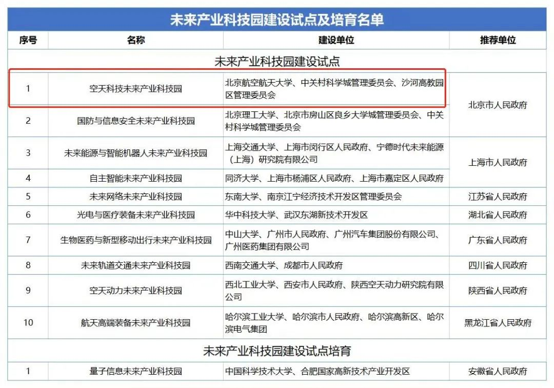 为深入贯彻党的二十大精神,落实习近平总书记关于抓紧布局未来产业重要指示精神,近日,科技部、教育部确定了北京航空航天大学空天科技未来产业科技园等10家作为未来产业科技园建设试点,加快突破一批未来产业重点方向关键核心技术,孵化一批具有未来产业特征的高成长性科技型中小企业,培育一批多学科交叉融合的未来产业创新创业人才。