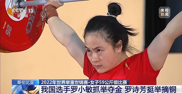 2022年世界举重锦标赛正在哥伦比亚波哥大举行。在女子59公斤级比赛中,我国选手罗小敏拼得抓举金牌,罗诗芳获得挺举铜牌。
