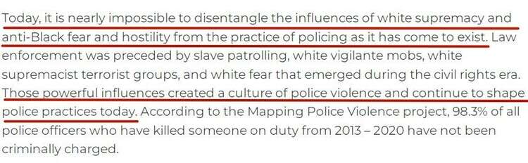 文章认为,今天几乎不可能把白人至上主义和反非洲裔敌意的影响从已经存在的美国警务实践中分离出来。从奴隶巡逻队到白人至上主义恐怖组织,再到民权运动时代出现的“白人恐惧”,这些强大的影响造就了美国警察暴力文化,并继续影响着今天的警察行为。