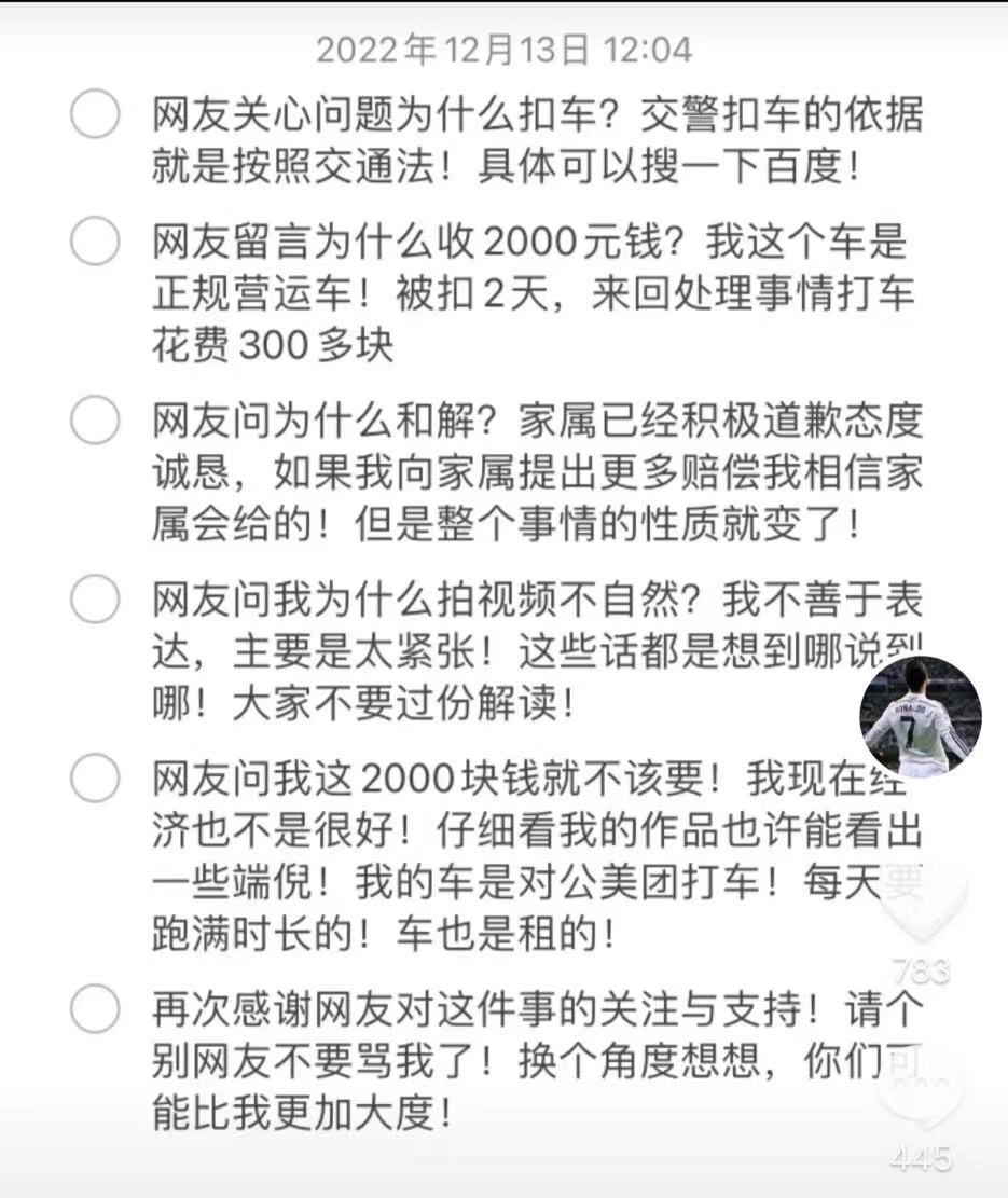 当事人在抖音更新后续:老人家属道歉
