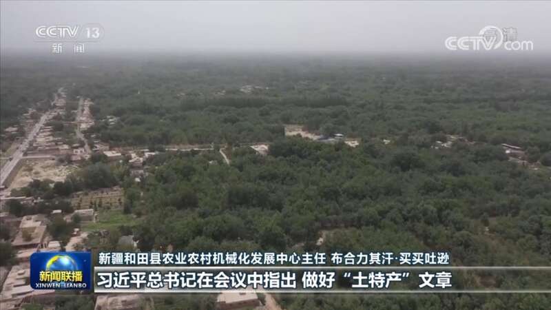 新疆和田县农业农村机械化发展中心主任 布合力其汗·买买吐逊:习近平总书记在会议中指出,做好“土特产”文章。薄皮核桃是和田的土特产之一,我们全县核桃面积30万亩、产量达6.07万吨。把特色产业转化为优势产业,辐射带动5万多户。接下来,我们将不断延伸产业链,提高农产品附加值,带动更多的农民群众持续稳定增收。