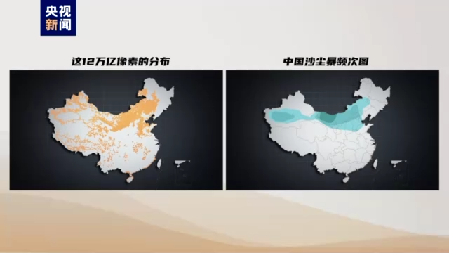 看到这12万亿像素,让我突然想到了中国沙尘暴频次图。沙尘暴频发的位置和荒漠化监测的点位分布大概一致。