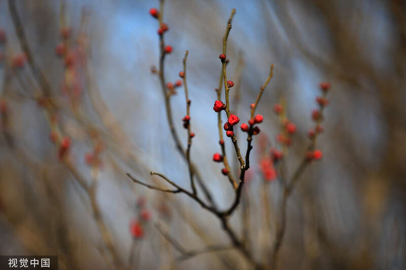 2023年1月2日,江苏省淮安市,古淮河畔梅花含苞欲放。 视觉中国 图