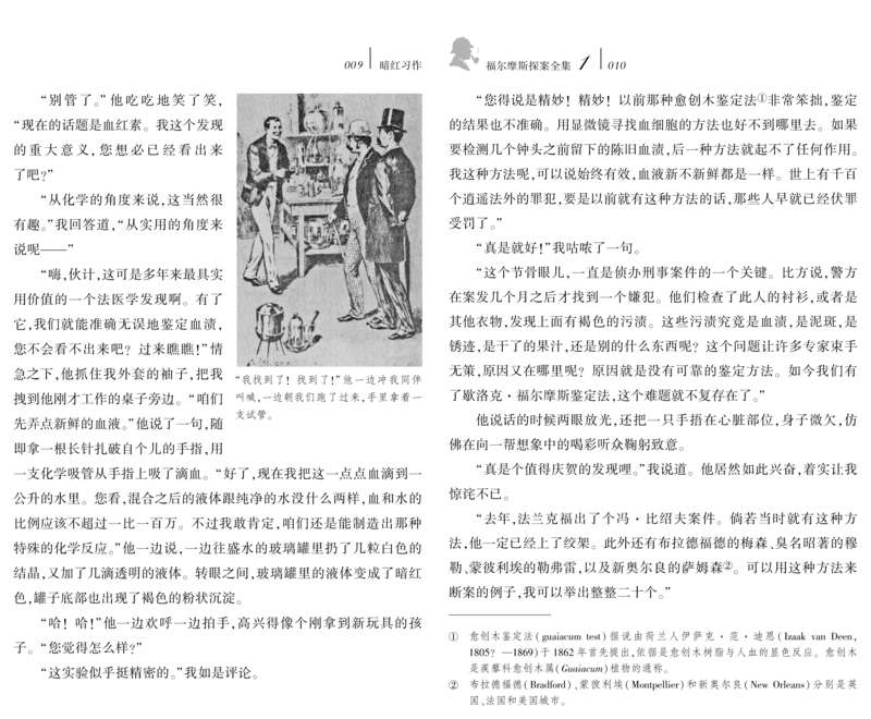 这套书的译者李家真介绍自己翻译的工作时称,他查阅了诸多资料也核对了很多细节,比如他将第一章标题“血字的研究”改为“暗红习作”,既是基于对当时英国用词习惯和文学风格的考察;也回应了正文中福尔摩斯对于“艺术词藻”的一句调侃,有着充足的依据(详见《中华读书报》2015年7月1日16版李家真所撰《关于〈暗红习作〉的翻译》);此外,他还根据英文底本中的拼音以及相关史料,将出现在小说《显赫的主顾》中的中国人“唐寅”的名字改成了“唐英”。在他的研究中,唐英是雍正乾隆年间的景德镇督陶官,他奉旨写作的陶瓷制作书籍《陶冶图》,早在1899年就被译介到英国,而英国的博物馆也收藏着带有唐英款识的瓷器,广为闻名。因此柯南·道尔的小说中引入此人,便不足为奇了。