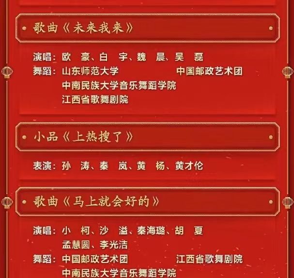 中国青年报客户端北京1月20日电(中青报·中青网记者 沈杰群)今日,中央广播电视总台《2023年春节联欢晚会》节目单正式发布。