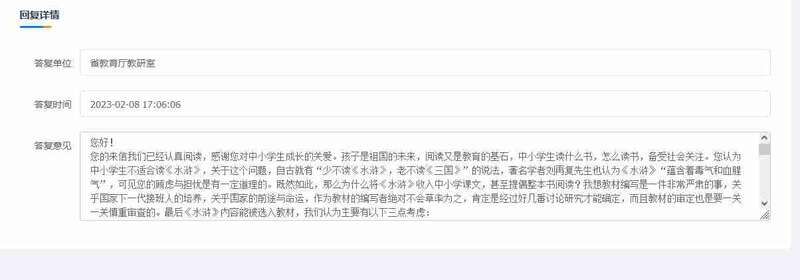 有网友表示,《水浒》中的确有过多负面内容。而另外不少留言认为,提出质疑的网民有些多虑,而教育部门的回复可以“加鸡腿”。
