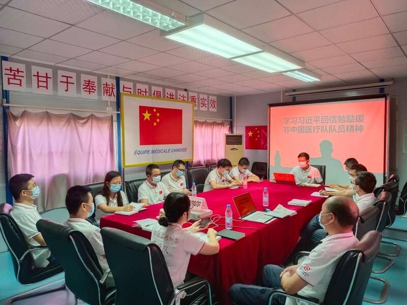第19批援中非中国医疗队队员在一起学习总书记回信