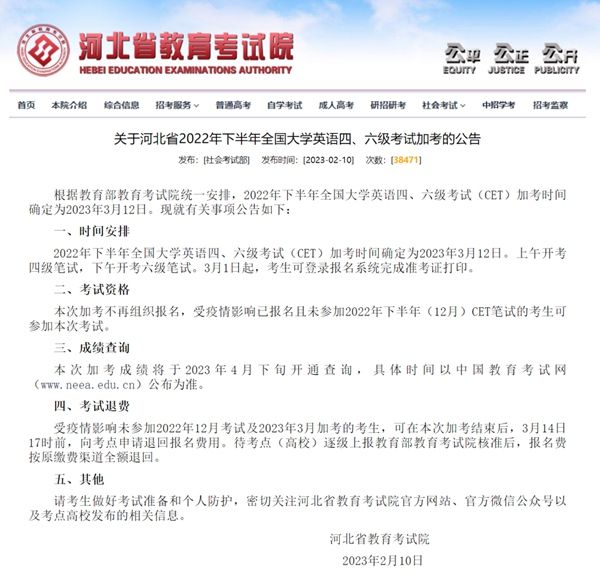 2月17日,中国教育考试网发布消息