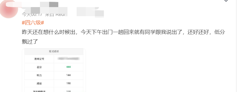 晒出了四六级成绩