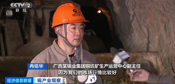 广西某锡业集团铜坑矿生产运营中心副主任 冉铭华:因为我们的市场行情比较好,井下的生产工作是争分夺秒地出矿。已经是满产了,达到最高的出矿量。