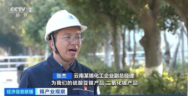 云南某锡化工企业副总经理 张杰:新能源板块的强势崛起,为我们的硫酸亚锡产品、二氧化锡产品创造了一个供不应求的局面,出口量也增加了百分之二十几以上。
