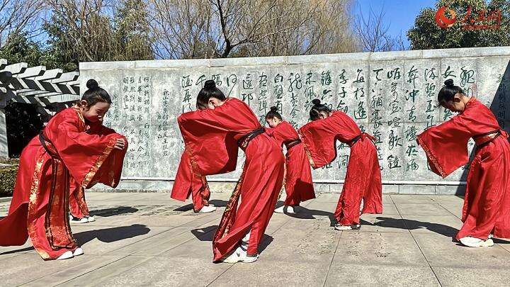 据悉,平日时常会有市民自发到此组织诗歌朗诵会。记者参观当日,鹤壁市朗诵协会的会员和市福田小学的学生们在太白广场表演了精彩的吟诵节目。“投我以木瓜,报之以琼琚。匪报也,永以为好也。”孩子们一边作揖,一边用稚嫩的童声吟唱着《诗经·卫风·木瓜》。