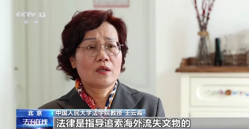 中国人民大学法学院教授 王云霞:法律是指导追索海外流失文物重要的准绳,它也是我们维护文化遗产权益的一个重要武器,运用法律手段去积极开展流失文物追索工作,也是我们维护国家权益、维护当事人的正当权益的重要手段。