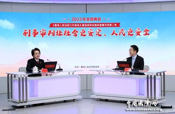 3月8日,由最高人民法院新闻局主办的2023年全国两会《最高人民法院工作报告》解读系列全媒体直播访谈活动第二场举行。
