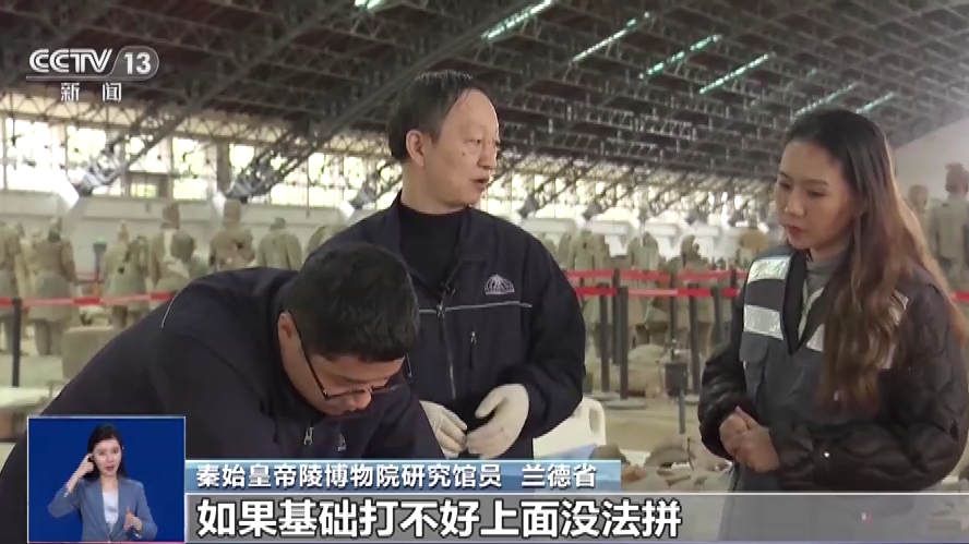 据介绍,秦陵博物院文保部有几十人,同时在处理院外文物,秦俑二号坑、百戏俑坑、陵西大墓出土的文物,以及一号坑第三次发掘的兵马俑,他们的任务是每年修复兵马俑十几件。作为秦俑一号坑第三次发掘的修复负责人,兰德省带领团队,已成功修复此次发掘中出土的兵马俑130余件。