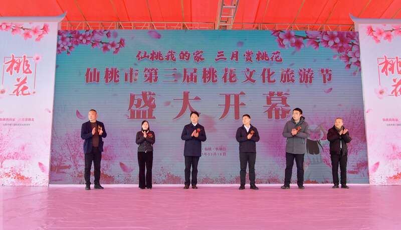 本次旅游节开幕当天,仙桃市郭河“花果飘香”、剅河桃花小镇、郑场渔泛峰、九合垸京九庄园、彭场镇大岭村、长埫口镇四合村6个规模桃种植基地同时邀约人们前往踏青赏花。当地文艺工作者送上花鼓戏现场助兴。