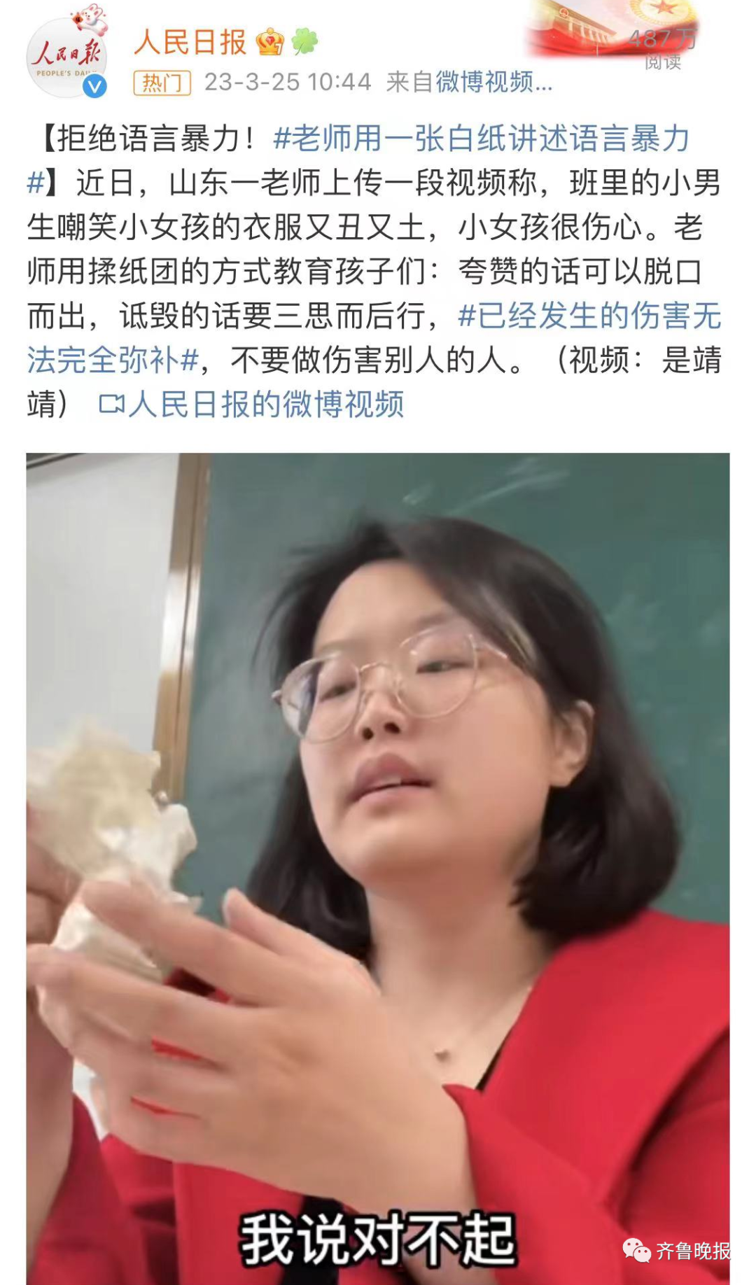 济南一位老师用一张白纸讲述语言暴力的视频被全网点赞!