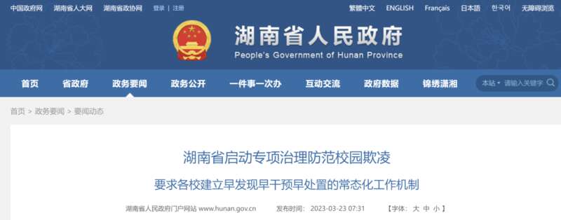 由于施暴者是未成年人之前对于校园霸凌的定性、防治相当困难不过,湖南省已经出手了