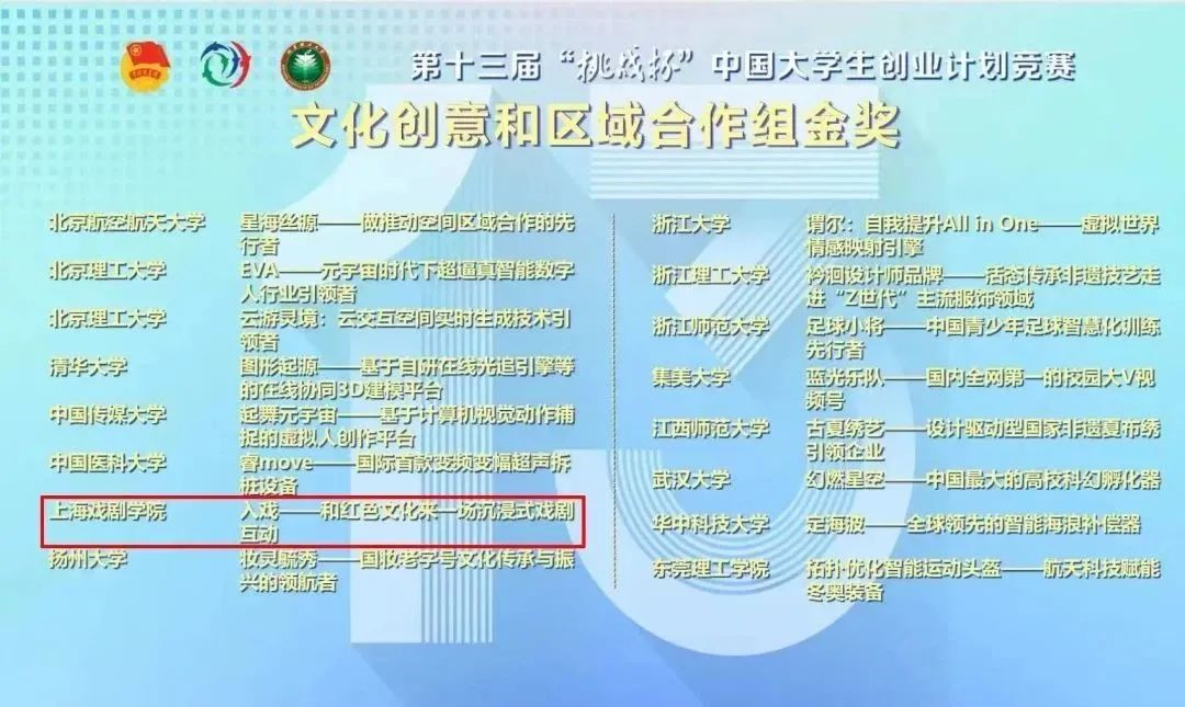 “入戏”项目从上海戏剧学院大学生创新创业大赛中孵化而来,在“挑战杯”市赛中不断成长,再在国赛中迎难而上,整个过程都得到了校内外专家学者和创业导师的悉心指导。“入戏”的成功,是上戏融专业教育与创新创业教育为一体的“双创双融”成果,也是学校相关部门、各个院系通力合作的成果。