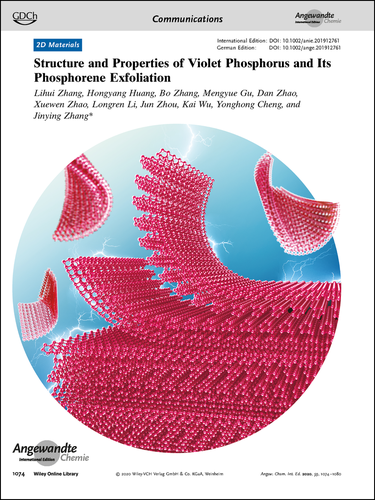 △《紫磷结构及特性以及紫磷烯的剥离》(Structure and Properties of Violet Phosphorus and Its Phosphorene Exfoliation)为题发表在权威期刊 《德国应用化学》(ANGEWANDTE CHEMIE-INTERNATIONAL EDITION)上(影响因子16.823)