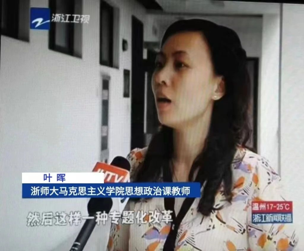 在学生眼中,叶晖是“学霸”的存在,从保送攻读浙师大思想政治教育研究生,再到留校任教,后来一直与浙师、教师的身份结缘。在课堂上,叶晖是亦师亦友的大姐姐,与同学们相熟于课堂,又不止于课堂。“要摒弃灌输式教学,让学生‘走进’课堂参与互动,是我一直努力的方向”,在叶晖看来,真正上好一堂思政课,在学生心中播撒真善美的种子并非易事。