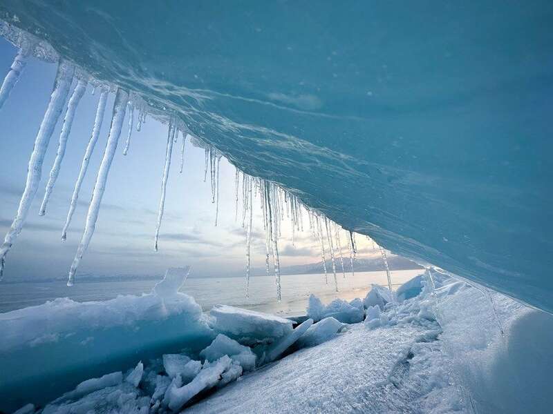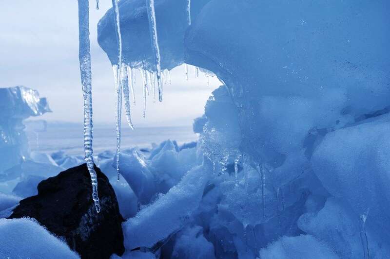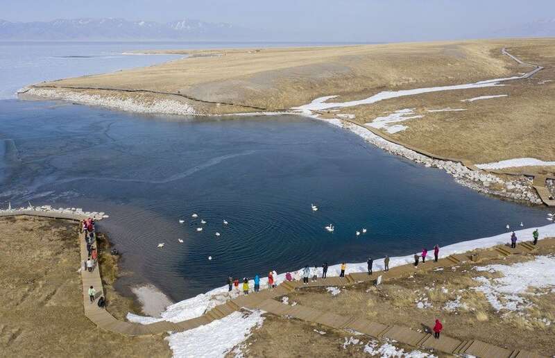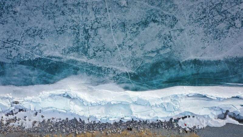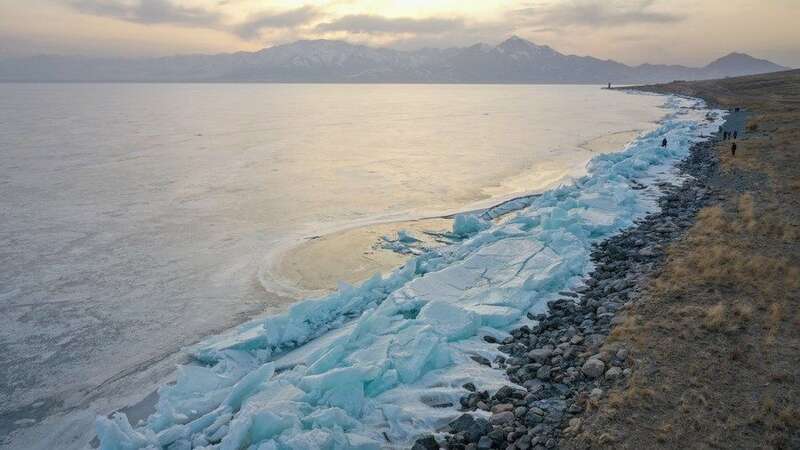 “冰推”期的赛里木湖冰面呈现独特的淡蓝色