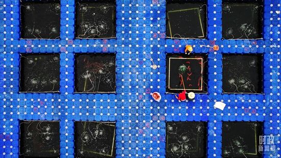 △浮筒式池塘网箱。(总台央视记者刘琦拍摄)