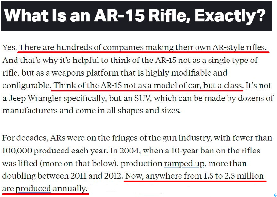 美国最大的枪支利益集团——全国步枪协会(NRA)甚至在2016年公开将AR-15鼓吹为“美国步枪”。