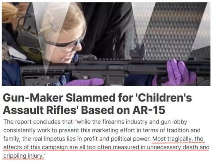 控枪倡导组织“暴力政策中心”执行主任乔什·舒格曼指出,枪支行业和代表其利益的组织已经把向美国儿童和青少年推广枪支作为首要营销任务之一。“可悲的是,这种营销业绩往往要以不必要的死亡和伤残来衡量”。