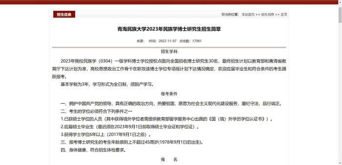 同时,根据《青海民族大学2023年民族学博士研究生招生简章》,报考博士研究生的考生年龄原则上不超过45周岁(1978年9月1日后出生)。阿进录生于1973年10月,年龄涉嫌不符合报考条件,媒体报道称上述工作人员表示:“他资格审查是通过的。”