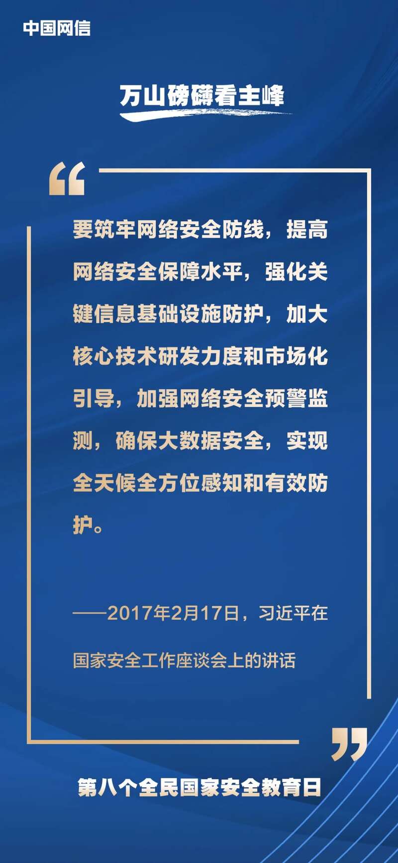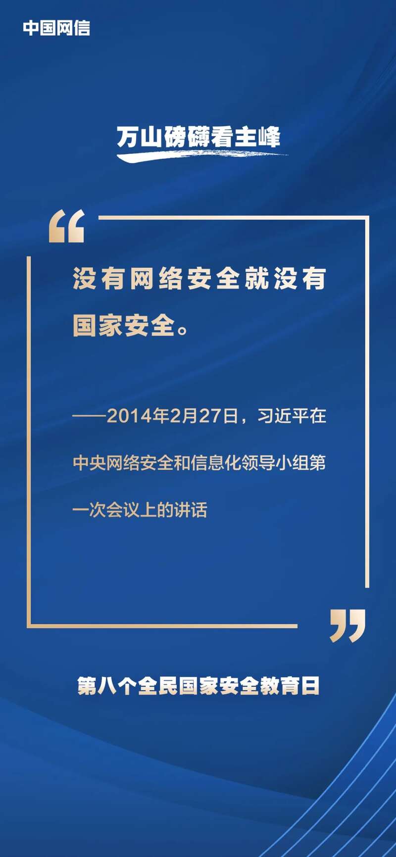 国家安全是安邦定国的重要基石,维护国家安全是全国各族人民根本利益所在。2023年4月15日是第八个全民国家安全教育日,今年的主题是“贯彻总体国家安全观,增强全民国家安全意识和素养,夯实以新安全格局保障新发展格局的社会基础”。没有网络安全就没有国家安全,以下摘取习近平总书记关于“网络安全”的重要论述,与你一起回顾学习。