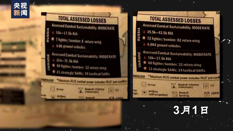 此前,《纽约时报》援引美国政府官员的话称,他们相信其中大部分文件可能是真实的,不过其中一些文件内容似乎被修改过,比如在这份网上流传的日期为3月1日的文件,就出现了两个版本,在俄乌双方的阵亡人数和装备损耗上存在差异。