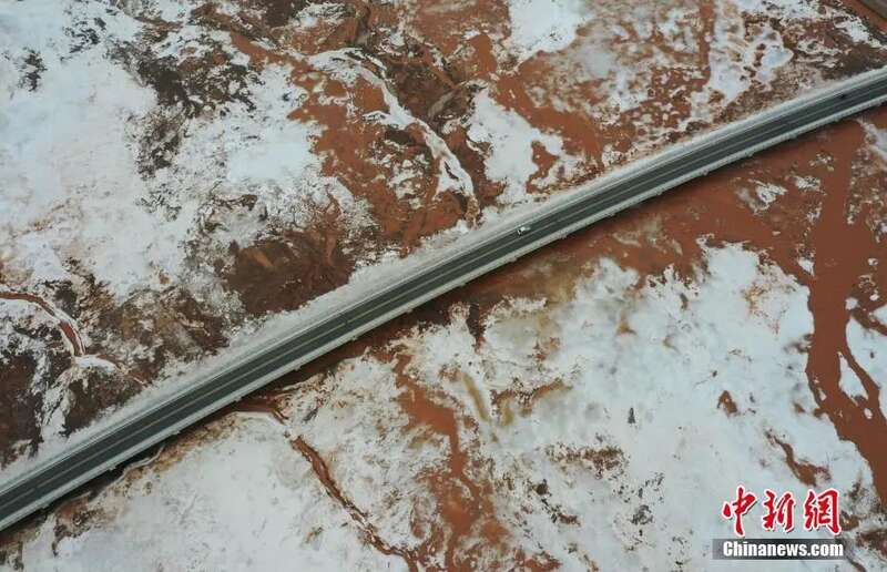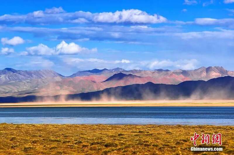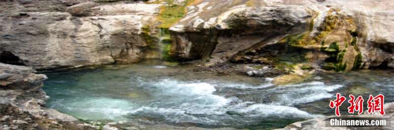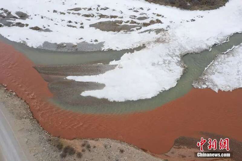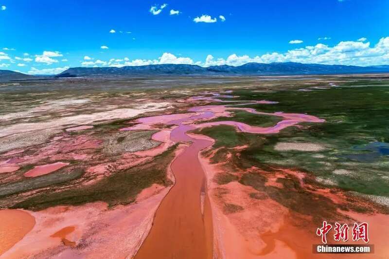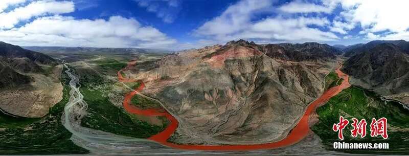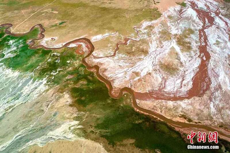 阿拉克湖多条支流奔流不息地拍打着红色河床,犹如碧玉宝镜舞动着红色丝带。柴迪成 摄