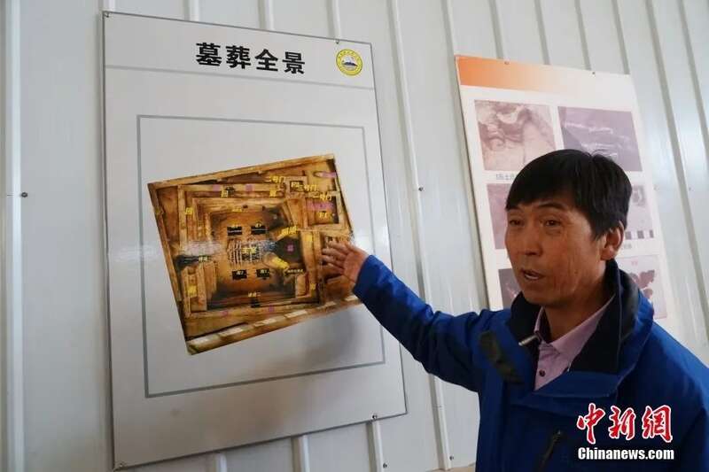 现如今三层只保留了一层,但考古人员在墓中发现的一件文字锦残片,经德国哥廷根大学古文字学家确认,为波斯萨珊朝的婆罗钵文字,系目前世界上唯一确证的八世纪波斯文字锦。