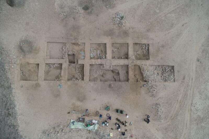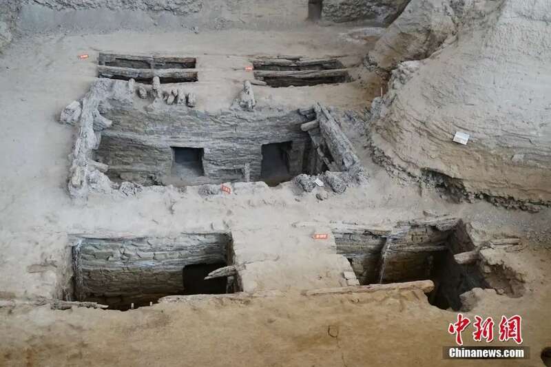 目前,遗址区和墓葬区发掘工作正在有序进行。发现遗迹有石墙、瓮棺、灰堆等,出土遗物有陶片、石器、骨器、毛织品等,陶片中有彩陶。墓葬区发现墓葬等,出土遗物有陶片、海贝等。