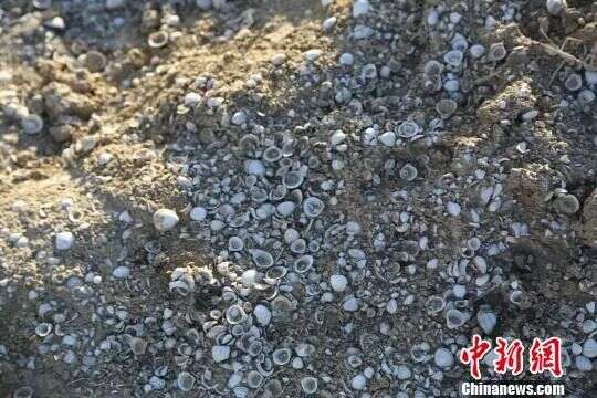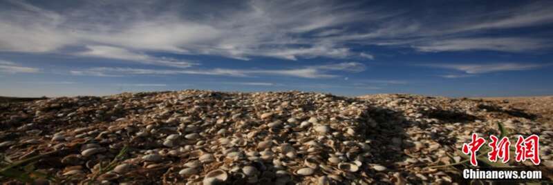 贝壳同含有盐碱的泥沙凝结在一起,层层叠叠,千姿百态,是迄今为止中国内陆盆地发现的最大规模的古生物地层。
