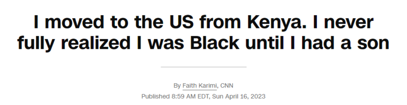 中国日报网4月17日电(党超峰)当地时间16日,CNN资深撰稿人Faith Karimi在CNN网站撰文称,自己从肯尼亚搬到美国后,相当长一段时期以一个旁观者的身份观察种族问题,直到有了儿子才完全意识到不能回避讨论种族问题。