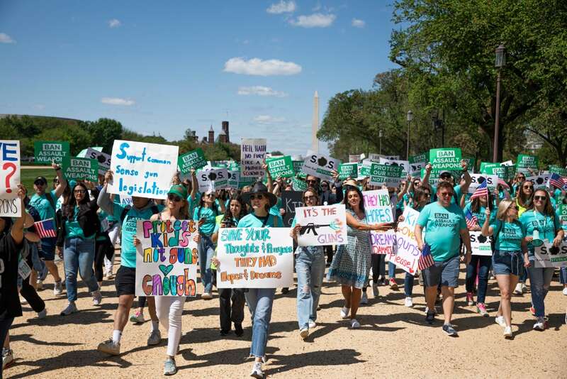 4月17日,人们在美国首都华盛顿参加控枪游行,呼吁禁止销售攻击性武器,应对美国枪支暴力问题。新华社发(亚伦摄)