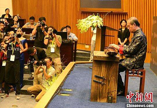 2015年,李祥霆在厦门国际会展中心弹奏“九霄环佩”。中新社记者 王东明 摄
