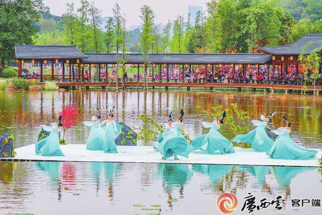 丽人们湖边踏春,吟诵着朱熹的《春日》,跳起了优雅的舞蹈,打开美丽的红伞墙,引领游客走进“胜日寻芳”的意境中。汉代“上巳节”的水边祓禊、魏晋的曲水流觞、唐代的丽人游春……一幕幕场景展示,让人感受到“三月三”的源远流长的历史传承和深沉浓厚的文化底蕴。