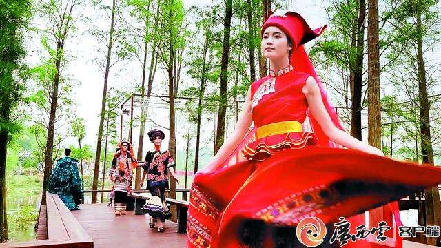 青山绿水间,广西民族潮服走秀秀出新时尚。