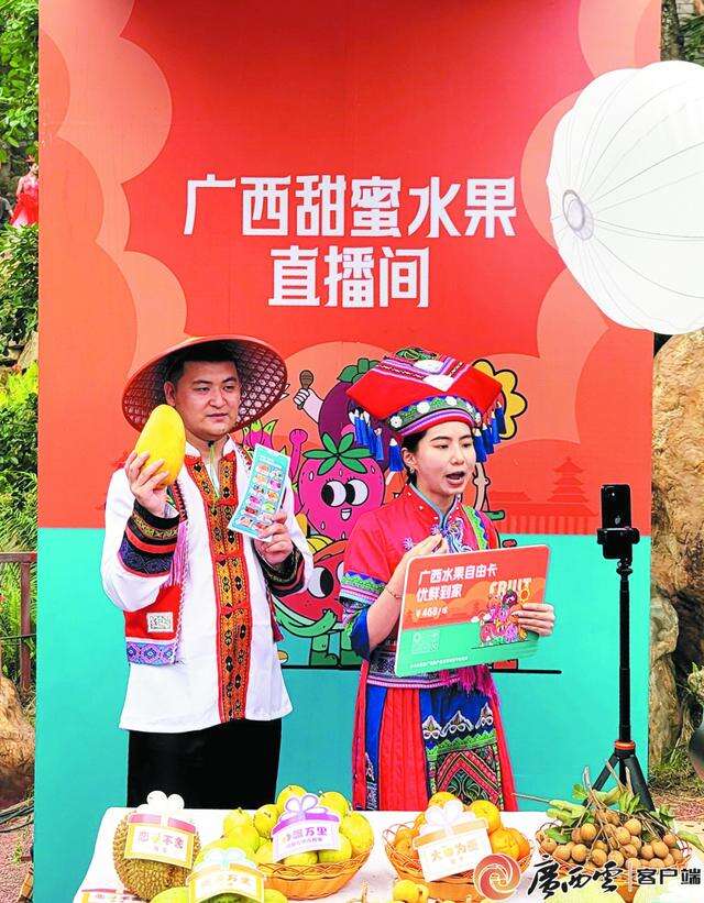 活动现场,桂果、桂酒、桂茶、广西米粉等广西特产人气爆棚,品尝、购买的游客纷沓而来,旁边搭建的现场直播间里,主播吆喝促销此起彼伏,网友线上踊跃下单。除了广西特色产品,泰国猫山王榴莲和乳胶枕、马来西亚燕窝、澳洲白葡萄酒、新加坡肉骨茶料包等进口商品也引来不少游客围观。