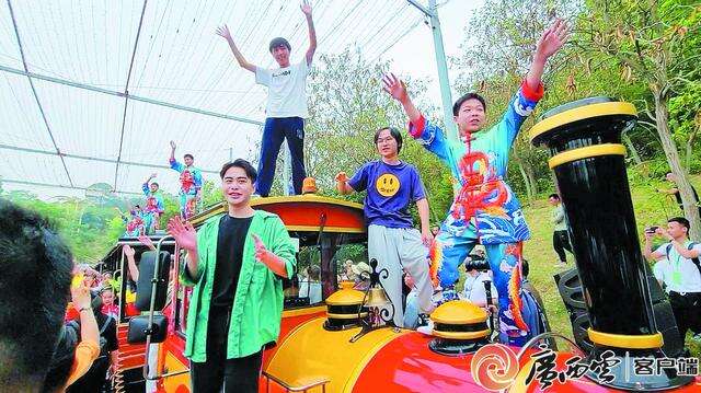 杂技演员挥手致意,将快乐传递给每一位游客。